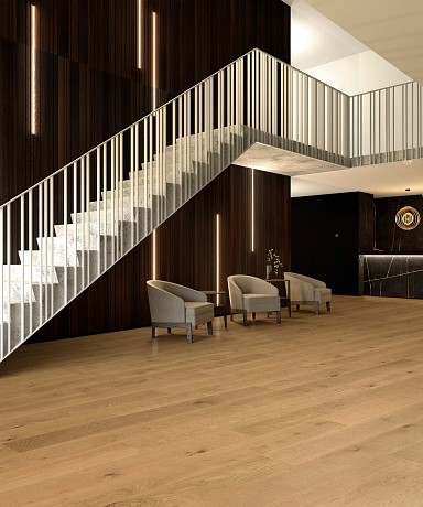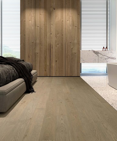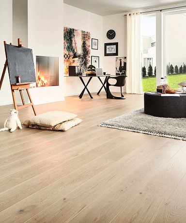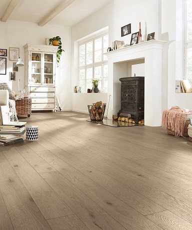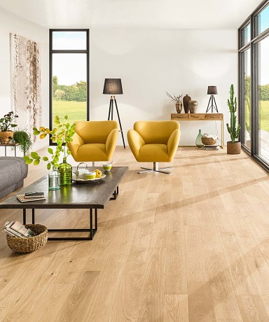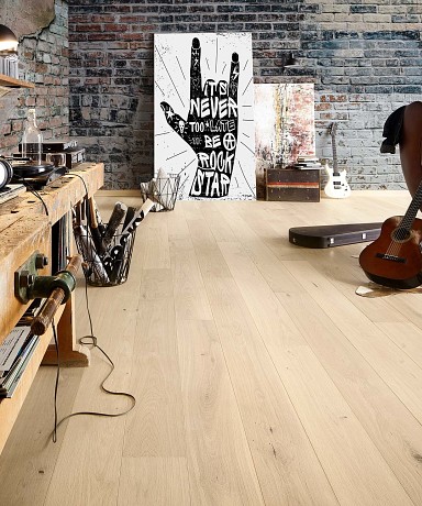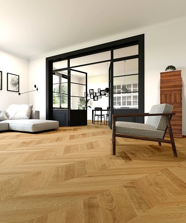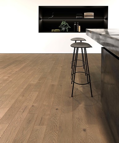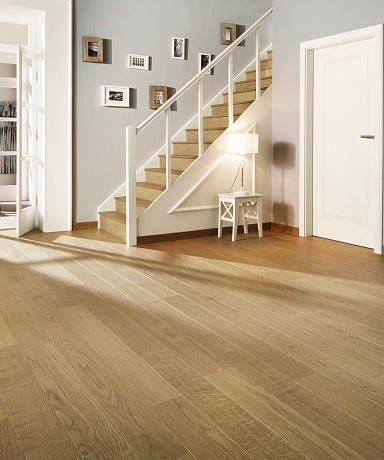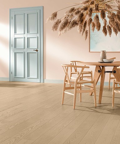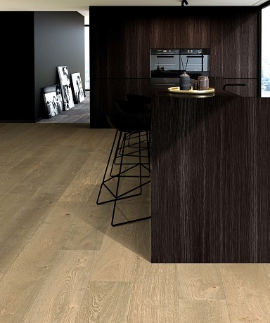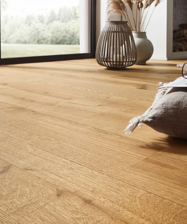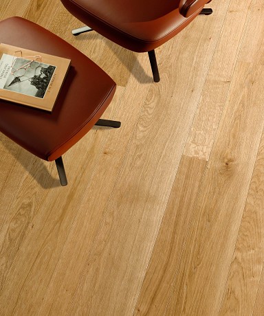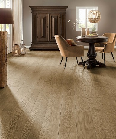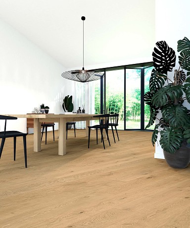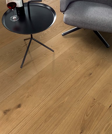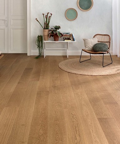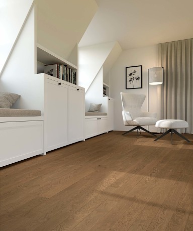 Finishing with oil gives the wood a more natural character, a beautiful patina and an authentic look. Soaping the floor regularly gives it an extra protective layer that makes it more resistant against staining. A yearly clean with a suitable intensive cleaner and applying a maintenance oil keeps the saturation of the wood optimal.